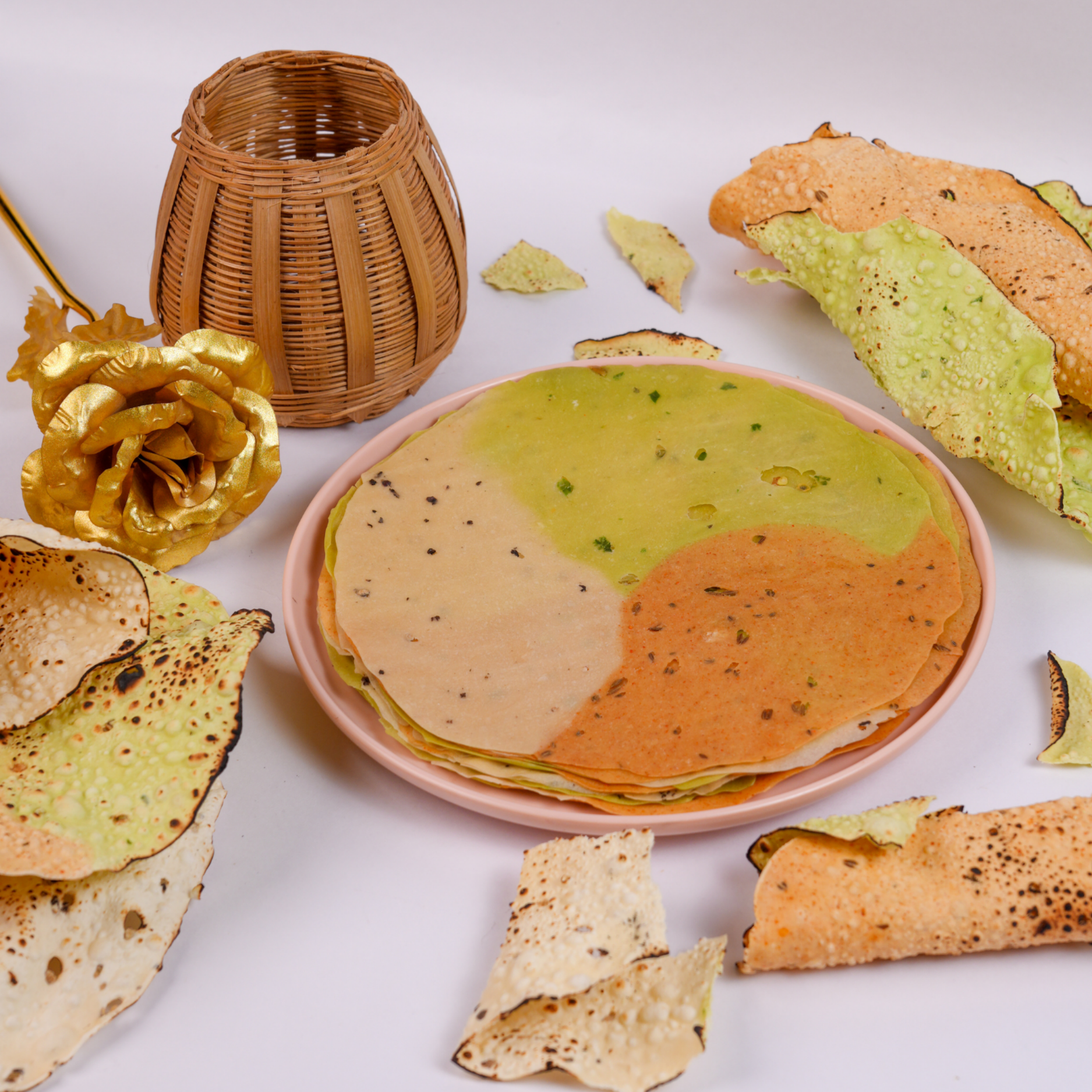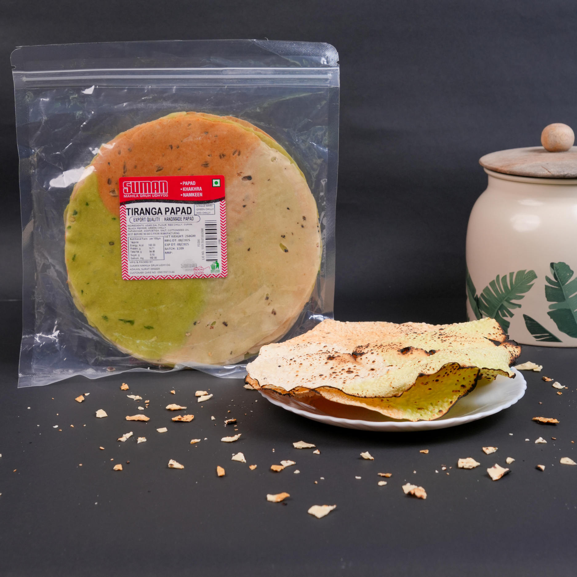 Tiranga Papad offers a flavorful and crispy accompaniment perfect for enhancing your meals. Crafted with quality ingredients, it delivers a balanced taste that pairs well with traditional Indian dishes. Enjoy its convenient preparation and authentic texture, making it an ideal choice for snacks or side servings.